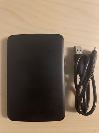 Disco duro externo portátil de 1TB con acabado en color negro. - Capacidad de almacenamiento de 1TB. - Diseño compacto y elegante. - Conexión USB. - Muy poco uso. Como nuevo. - Se vende por paso a disco de respaldo de mayor o ocupación.