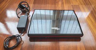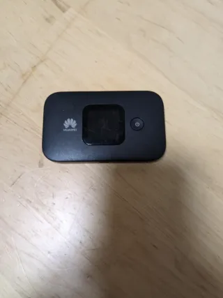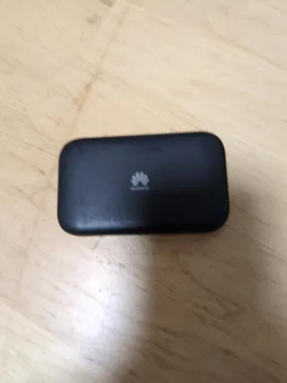 Router 4G portátil de color negro. - Diseño compacto y elegante. - Pantalla integrada. - Botón de encendido.