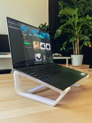 Soporte para portátil con un diseño moderno y curvo. Eleva tu dispositivo para una mejor ventilación y comodidad. - Para portátiles de 13" a 16" - Acabado blanco o negro