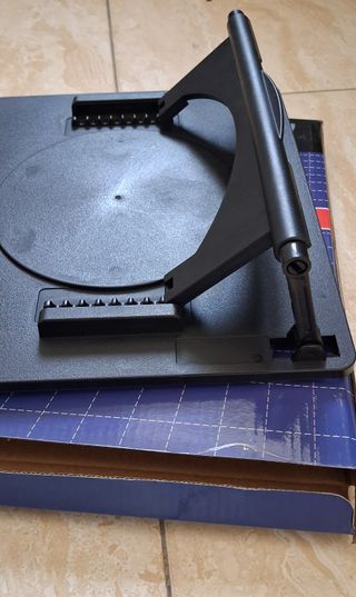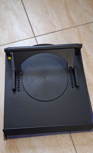 Base refrigeradora negra para portátil. Diseñada para mejorar la ventilación de tu equipo. - Superficie circular. - Soporte ajustable. - Diseño plegable.