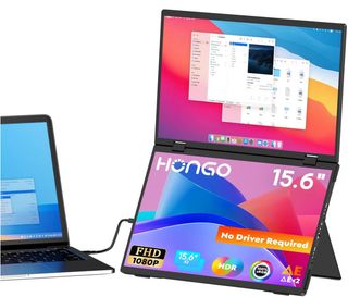 HONGO 15.6" Monitor Portátil, Extensor Pantalla Portatil 1080P HDR 360° Rotación Triple Monitors con Soporte, Portable Monitor USB-C, Plegable Doble Pantalla para Laptop PC Mac Phone PS4/5 (No Driver) [Clase de eficiencia