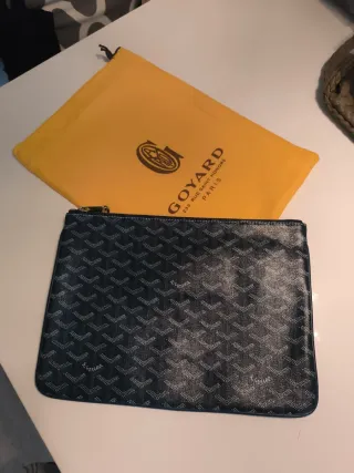 Funda Goyard con el icónico estampado. - Color azul marino. - Incluye bolsa protectora amarilla con logo Goyard.
