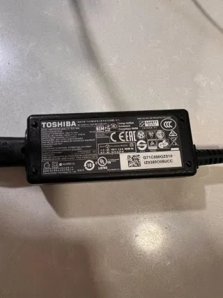 Adaptador de corriente AC/DC para equipos informáticos Toshiba. - Modelo: PAS177U-1ACA - Entrada: 100-240 V~1.3 A 50-60 Hz - Salida: DC 19V 2.37 A - Fabricado en China