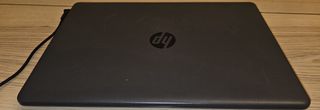 Portátil HP en color negro con un diseño texturizado. - Cubierta con patrón geométrico. - Logo de HP visible. -funciona perfectamente pero he perdido el cargador ai su precio -como se ve en las fotos