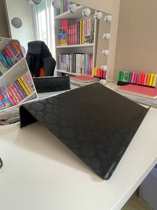 Soporte ergonómico para ordenador portátil, ideal para trabajar o estudiar desde casa. Eleva la pantalla para mejorar la postura y reducir molestias en cuello y espalda. Diseño estable y resistente, con base antideslizante y buena ventilación para evitar el sobrecalentamiento.