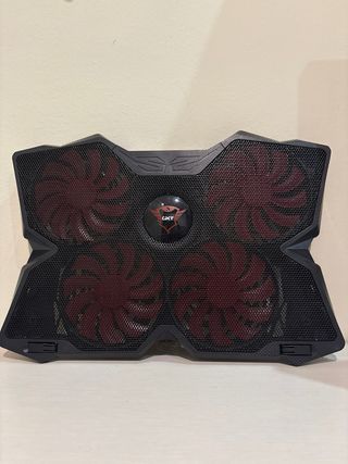 Base refrigeradora para portátil con diseño moderno y cuatro ventiladores. - Ventiladores de 120 mm con iluminación LED roja. - Alimentación por USB. - Soporta portátiles de hasta 17.3 pulgadas.