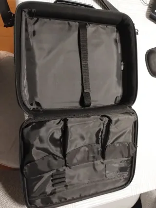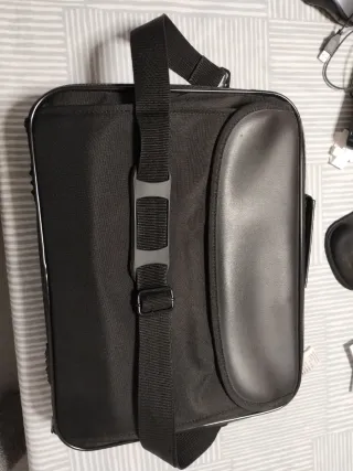 Maletín negro para portátil con correa. - Material textil. - Detalle en polipiel. - Cierre de cremallera. No se de que marca es