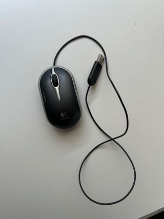 Ratón láser portátil Logitech NX50, ideal para llevar contigo. Su diseño combina tonos negros y plateados para un aspecto elegante. - Tecnología láser para un seguimiento preciso. - Conexión por cable USB.