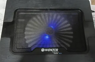 Base refrigeradora para portátil con ventilador. - Diseño en color negro. - Rejilla metálica. - Ventilador central con iluminación. No presenta desperfectos