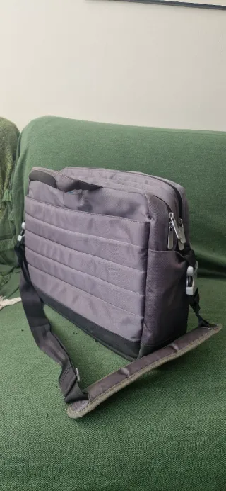 Maletín acolchado para portátil, marca Poss. Utilizado, pero en buen estado (el exterior tiene zonas rozadas por el uso, el interior está perfecto) Incluye: - 2 compartimentos grandes para ordenador y apuntes. - compartimentos pequeños para tablet, mobili, auriculares, etc. - Bolsillo exterior con cremallera y cin hueco para colocar en asa de maleta. - Correa de hombro ajustable y acolchada.
