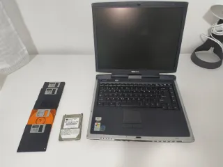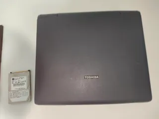 Portátil Toshiba en color negro y plateado. - Incluye varios disquetes. - Se incluye un disco duro. La batería está ko. No tengo cargador y hay que reinstalar Windows XP. Funciona enchufado ! Se vende para piezas.