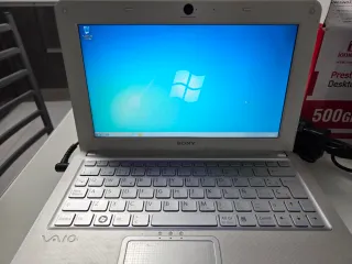 Portátil SONY VAIO en acabado plata y blanco. - Pantalla de 10 pulgadas. - Webcam integrada. - Teclado QWERTY español.