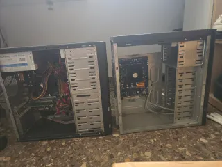 Se venden dos torres de ordenador, ideales para quien necesite componentes o quiera repararlas. No incluyen disco duro. El de la derecha carece de fuente de alimentación. Procesadores AMD Athlon y AMD Sempron 2gb de ram cada uno