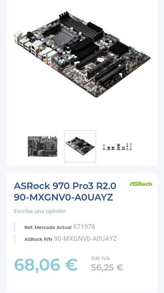 Placa Base ASRock 970 Pro3 R2.0 ATX Socket AM3+ AMD 970 + SB950