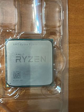 Procesador AMD Ryzen 5 5600X. Lleva guardado bastante tiempo porque cuando iba a probar otro procesador se me cayó algo encima de este y se doblaron los pines no sé si funciona ya lo vendo como roto