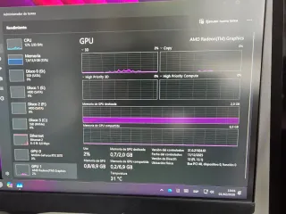 Ordenador en perfecto estado. Ideal para trabajos, ver videos, ect... y algun juego que no requiera de muchos graficos. windows 10 instalado. Procesador AMD con grafica integrada. 32 gb de RAM DDR4. SSD de 500 gb. AMD Atlhon 3000G.