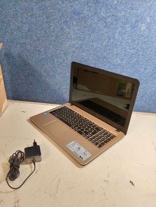 portátil sin sistema operativo y batería no funciona. ASUS F540SA‑XX110T con pantalla de 15,6″ (39,6 cm) HD 1366×768, procesador Intel Celeron N3050 (2 núcleos, 1,6–2,2 GHz), gráficos integrados Intel HD Graphics. Incluye 4 GB DDR3L y disco duro de 500 GB. Puertos: USB 3.0, USB 2.0, HDMI, lector de tarjetas; conectividad WiFi 802.11 b/g/n y Bluetooth 4.0. Peso aprox. 2 kg, dimensiones 381,4×251,5×25,4 mm. Funciona correctamente con adaptador, ideal para tareas básicas u ofimática.