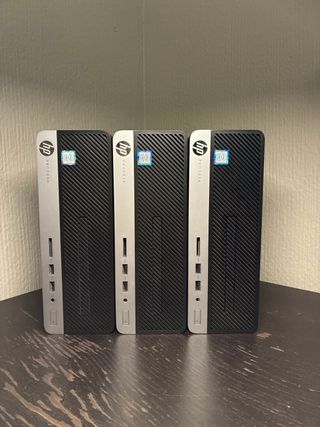 Lote de 3 ordenadores HP ProDesk 400 G6 SFF listos para usar. También disponible unidades sueltas. - Procesador Intel Core i7-9700 3.00GHz. - 1x16 GB RAM 2667 MT/s (ampliable). - SSD NVMe de 512 GB. - Windows 11 Pro activado. Equipos reacondicionados, limpiados, formateados y listos para usar. Usados, en buen estado general y totalmente funcionales. Ideales para oficina, empresa, estudios, programación o virtualización. [Se venden por lote o unidad, prioridad al lote]