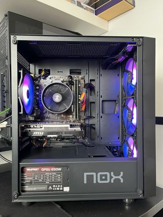 Potente ordenador gaming con componentes de alta calidad. Diseñado para ofrecer un rendimiento excepcional en tus juegos favoritos. - Windows 11 Pro activado - Procesador Intel Core i5 7500 CPU 3.40Hz - Fuente de alimentación VX750W. - Tarjeta gráfica ASUS GeForce GTX 1050 ti 4GB - RAM 16GB - Refrigeración líquida Coler Master - Iluminación LED. Funciona perfectamente Precio algo negociable Tiene la tapa, está quitada para la foto Lo vendo por cambio de hobby