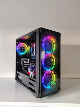 Potente PC para gaming con procesador Ryzen 5 y tarjeta gráfica RTX 3060. Diseño moderno con iluminación RGB. - Procesador AMD Ryzen 5. - Tarjeta gráfica NVIDIA GeForce RTX 3060. - Múltiples ventiladores con iluminación LED. - Panel lateral de cristal templado. -Negociable