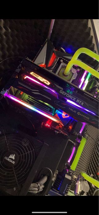 Pc Sobremesa Gaming hecho a medida. -Procesador: Intel Core i7 9700K 3.6 Ghz -Grafica: MSI GeForce RTX 2070 Gaming 8GB GDDR6 -Placa Base: Asus Rog Maximus XI Hero WiFi -RAM: G.Skill Trident Z RGB 3200 32GB -Refrigeracion Liquida -SSD (para sistema operativo): Aorus RGB AIC NVMe 512GB SSD -Sitema Operativo: Microsoft Windows 10 Home 64Bits OEM -HDD: Seagate BarraCuda 3.5" 2TB SATA 3 -Fuente Alimentación: Aerocool KCAS 800W 80 Plus Bronze -Caja: Thermaltake Core P90 USB 3.0 Cristal Templado) El pc funciona perfectamente, tiene bastante potencia para tirar juegos con graficos altos. Pasta Termica y liquido refrigerante recien cambiados.