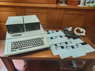 Ordenador Apple IIe de 1982, versión P.A.L mejorada. Incluye dos unidades de disco Disk II y varios accesorios. - Kit de mejora (enhancement) - Dos unidades de disco Disk II. - Cable de alimentación. - ampliación de memoria 80 col. 64kb - Tarjeta expansión para impresora y cable. - Múltiples disquetes Mini-Diskette, con software y juegos variados. - Entrego documentación y manual por correo electrónico. - Kit de chips de reemplazo variados + procesador y roms originales. - Maquina totalmente restaurada y en un estado impecable, totalmente funcional.