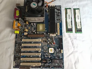 Placa base MSI KT6V / MS-7021. - Procesador AMD Athlon XP 1700+ - Dos módulos ram ddr4 333 de 512mb - Color rojo. - Incluye disipador y ventilador Cooler Master. - Tres ranuras para memoria RAM. - Múltiples ranuras de expansión PCI y AGP. - Bios actualizada a su última versión. En perfecto estado de funcionamiento.