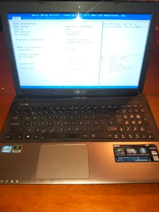 Portátil Asus K55V con procesador Intel Core i7. - Procesador: Intel Core i7-3630QM a 2.4GHz el ordenador enciende tiene RAM pero no disco duro le falta la tapadera de la RAM y el disco duro tiene una bisagra tocadilla lo vendo para piezas en 20€ SE HACEN ENVÍOS A TODA ESPAÑA NO SE ADMITEN DEVOLUCIONES NO DOY CARGADOR SI SE QUIERE CON EL CARGADOR SON 5€ MAS GRACIAS