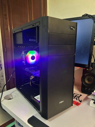 Ordenador de sobremesa con procesador i5 y tarjeta gráfica R9 270X. Intel i5 4440 Tarjeta gráfica (GPU) Radeon R9 270x Dos módulos de memoria RAM DDR3 de 4GB cada una. HDD de 500gb (puede intercambiar por un SSD de 128gb) Caja NOX (con pequeña rotura, pero nada grave, no afecta al funcionamiento ni la estética como se ve en las fotos). Siéntete libre de preguntar cualquier duda. precio negociable