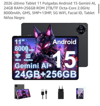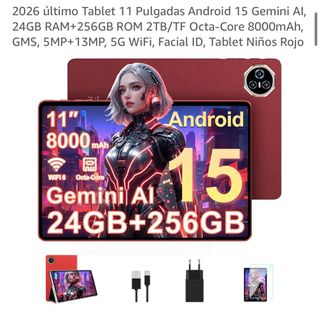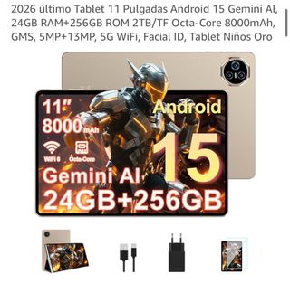•NUEVA A ESTRENAR• PVP: 199,99€ Tablet de 11 pulgadas con Android 15 y procesador Octa-Core. - 24GB de RAM y 256GB de ROM. - Batería de 8000mAh. - Conectividad 5G WiFi. - Cámara frontal de 5MP y trasera de 13MP. - Incluye GMS y reconocimiento facial.