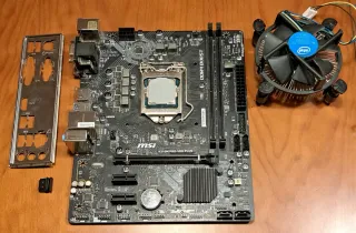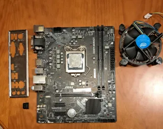 Conjunto de componentes para PC: placa base, procesador y disipador. EN PERFECTO ESTADO ✅️ INCLUYE ✅️ - Placa base MSI H310M PRO-VDH PLUS. - Procesador Intel Core I5 9400f - Disipador Intel. - Tornilleria de la placa - Chapa de la placa para los conectores