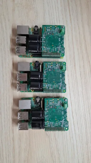 Se venden X3 (tres) unidades de Raspberry Pi 3B+ - Perfecto estado. - Montadas en una estructura acrílica con ventiladores. - Con disipadores cada una de ellas. Usadas como servidor, como pequeño pc con sistema operativo de Raspberry y como maquina Retro arcade. - Tienen su alimentación (cada una) de 3V para evitar falla de energía. - Dispongo de cajas individuales por si se quieren separar (5€ cada una). SOLO TRATO EN MANO. NO NEGOCIABLE.