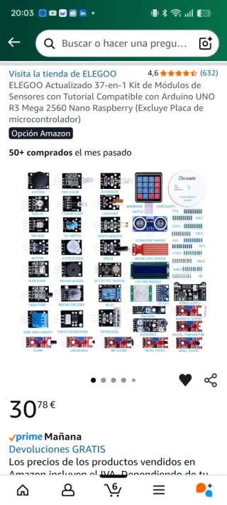 Kit de módulos de sensores ELEGOO actualizado, ideal para proyectos con Arduino UNO, R3, Mega 2560, Nano y Raspberry Pi. Incluye tutorial. - 37 módulos de sensores diferentes. - Compatible con Arduino UNO, R3, Mega 2560, Nano y Raspberry Pi. - Incluye tutorial para aprender a usarlos.