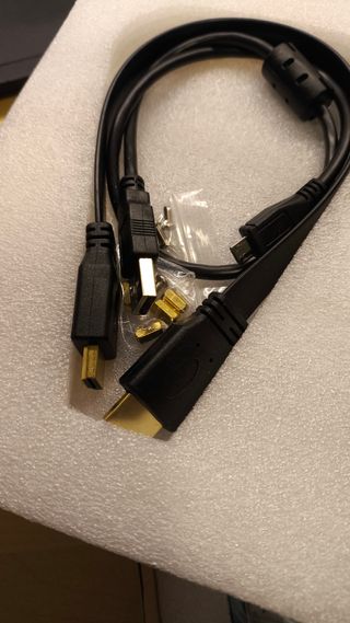 Variedad de cables y marcas para conectar tus dispositivos retro, Raspberry Pi, consolas de videojuegos y televisores. Incluye cables HDMI y otros tipos de conexión. - Cables de diferentes tipos y longitudes. - Ideales para coleccionistas y entusiastas de la tecnología retro. - Conexiones para audio y video.