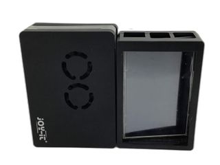 Preciosa caja para Raspberry Pi 3, con diseño Omen. Es de color negro y tiene un acabado en carbono. - Incluye una caja para Raspberry Pi 3. - Diseño elegante y compacto. - Fabricada con material de alta calidad. impresa en 3d la entrada hdmi esta tapada y la de alimentacion, para usar recomiento instalar una fuente de alimentacion 5v en el interior y sacar cable a la CA por el agujero redondo o alimentarla externamente por el gpio quitando la tapita superior