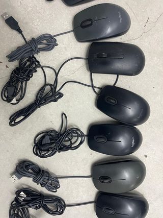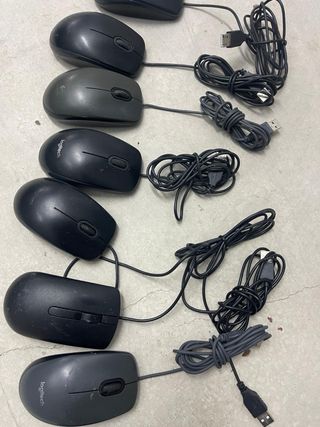 Lote de ratones Logitech para PC. Incluye varios modelos en tonos negros y grises. - Ratones con cable USB. - Diseño ergonómico para mayor comodidad. - Scroll wheel para navegación fluida.