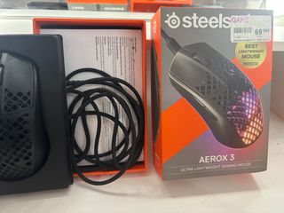Ratón gaming SteelSeries Aerox 3, diseño ligero y moderno. - Acabado en negro con detalles RGB. - Diseño de panal de abeja. - Conexión USB Tipo C.