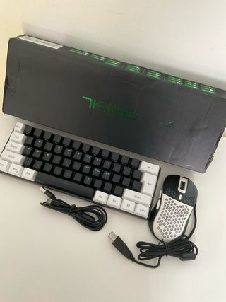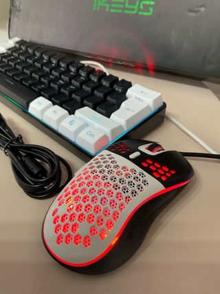 Conjunto de teclado y ratón para gaming. - Teclado compacto con diseño bicolor. - Ratón ergonómico con patrón de panal.