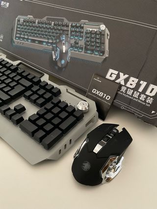 Este kit incluye un teclado y un ratón con un diseño moderno y luces RGB. - Teclado con teclas retroiluminadas. - Ratón con diseño ergonómico y rejilla. - Cableado para conexión.