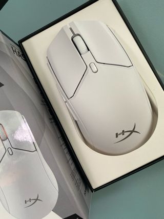 Ratón HyperX Haste 2 en color blanco con detalles en rosa. Incluye cable y receptor. - Diseño ergonómico. - Iluminación RGB. - Cable trenzado. -ligero y estable ideal para gaming nuevo, entrega en palma o cercanias