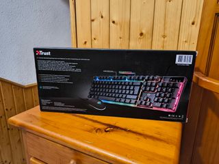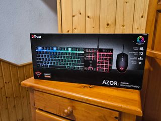 teclado y ratón Led Gaming GXT 838 Azor. Características: Teclado de tamaño completo3 modos de color LED con brillo ajustable Función contra efecto fantasma: con hasta 8 pulsaciones de tecla simultáneas Interruptor de modo de juego; desactive la tecla de Windows directamente Pies de goma antideslizantes y 2 pasos de altura ajustable12 teclas para funciones multimedia ratón con botón de selección de velocidad (800-3000 ppp) 6 botones de respuesta Ciclo de colores continuo Almohadillas de deslizamiento suaves con baja fricción