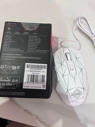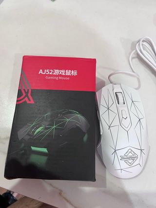 Ratón gaming AJAZZ AJ52 en color blanco, prácticamente nuevo. - 7 botones. - Interfaz USB. - Longitud del cable: 1.6m. - Peso: 127g. - Diseño elegante y ligero. -Varias luces de respiración(verde/azul/Púrpura etc)