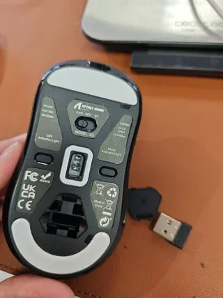 Ratón inalámbrico gaming con diseño de mecha. Está en muy buen estado. La marca no sé cual es, he elegido la primera que venía en la lista. - Diseño de mecha en amarillo y negro. - Conexión inalámbrica. - Botón DPI.