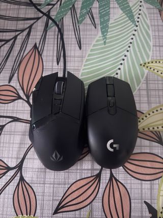 Se venden dos ratones de ordenador en color negro. - Un ratón de la marca Logitech. - Un ratón de la marca Volcom.