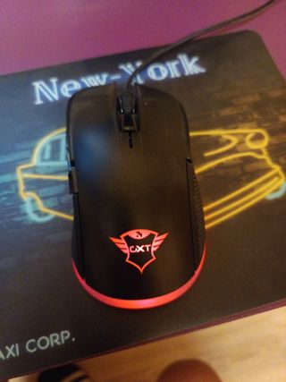 Ratón gaming de color negro con luces led que van cuando quieren -3 botones gaming - Logo de la marca GXT y va por cable USB.