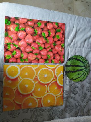 alfombrillas de ratón plastificadas con motivos cítricos y fresas. medida rectangulares:42x30. Solo las rectangulares a 2€ cada una.