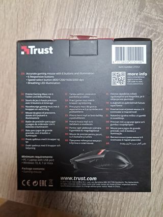 Ratón gaming Trust GXT 35 con un diseño llamativo. - Color principal negro con detalles en rojo. - Incluye receptor USB. - Botones personalizables.