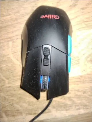 Ratón de ordenador Qilive con un diseño moderno y ergonómico. - Botones laterales en color azul. - Rueda de scroll central. - Conexión USB.