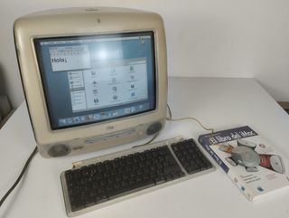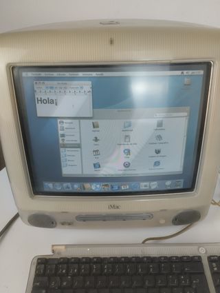 iMac SE 2001, FUNCIONA. PREGUNTA SIN COMPROMISO. Escucho OFERTAS. Tiene Mac os x instalado. Junto a ratón y teclado originales que funcionan. Y libro del iMac de regalo. La manzana trasera está en el interior de la carcasa, habría que abrirlo para encontrarla. No tengo caja original.