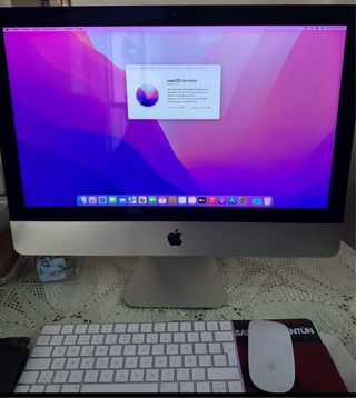 Ordenador de sobremesa iMac de 21,5 pulgadas, modelo de finales de 2015. Diseño elegante en color plata. - Actualizado a MacOS Monterey 12.x - Pantalla de 21,5 pulgadas. - Tiene el disco duro cambiado por un SSD de Samsung de 1TB para aumentar la velocidad. - Entrega en mano en Cádiz capital. - Incluye funda para el Mac con bolsillos para meter el teclado y ratón cuando no lo uses.
